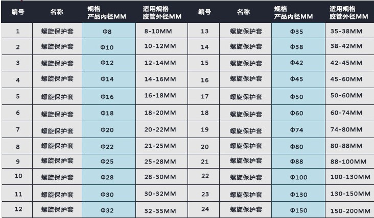 液壓管保護套規格: